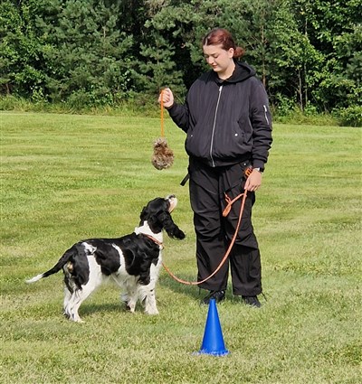 Söndagen var vi i Östervåla där vi hade bjudit in ”Spanielkul” med Catharina Lundberg i spetsen. Hon höll en uppskattad förmiddag i jaktens tecken. Catharina började först med lite teori för att därefter visa jaktstarten med hennes egen hund, för att sedan låta alla andra få prova på lite övningar.