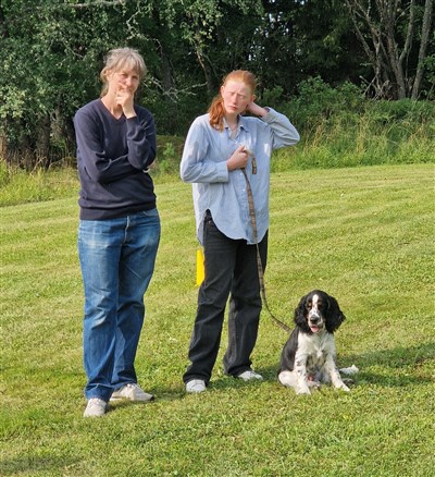 Söndagen var vi i Östervåla där vi i år igen hade bjudit in ”Spanielkul” med Catharina Lundberg och Gunilla Carlsson i spetsen. Hon höll en uppskattad förmiddag i jaktens tecken. Catharina började först med lite teori för att därefter visa jaktstarten med hennes egen hund, för att sedan låta alla andra få prova på lite övningar.