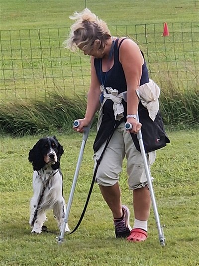 Sviterna efter våra valpkullar är många gropar i gräsmattan. Mysaks matte Ulrika hamnade i en av dessa gropar som orsakade en stukning. Ett besök på akuten kom hon hem med foten i bandage och kryckor. Så oturligt men hon kämpade på hela helgen ändå, tappert må jag säga.