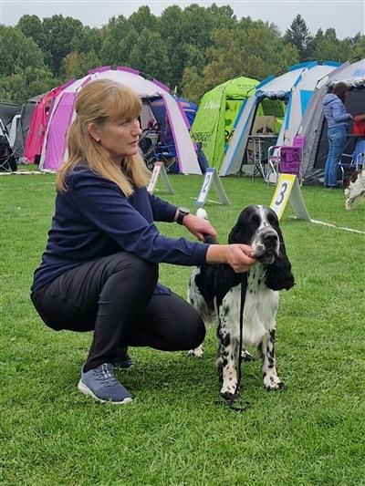 Tjalle har visat framfötterna på utställning och blivit excellent.